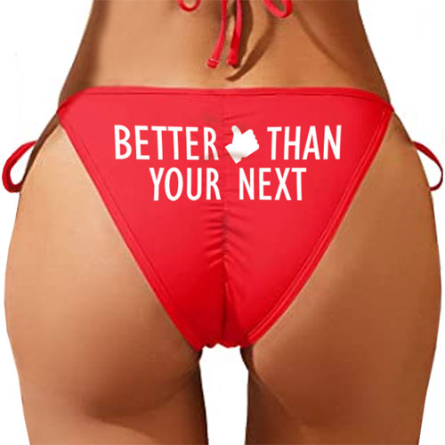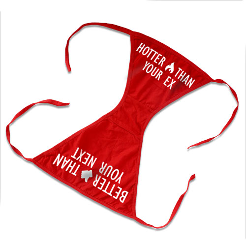 ● Includes: One freesize underwear that reads Hotter Than Your Ex on the front and Better Than Your Next on the back