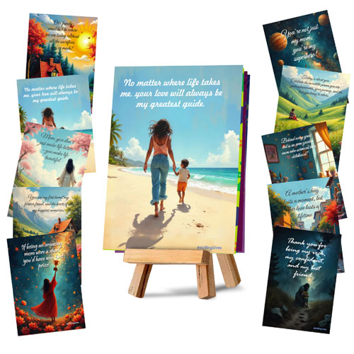 ● Includes: 10 cards emotional messages and beautiful prints and one mini wooden easel