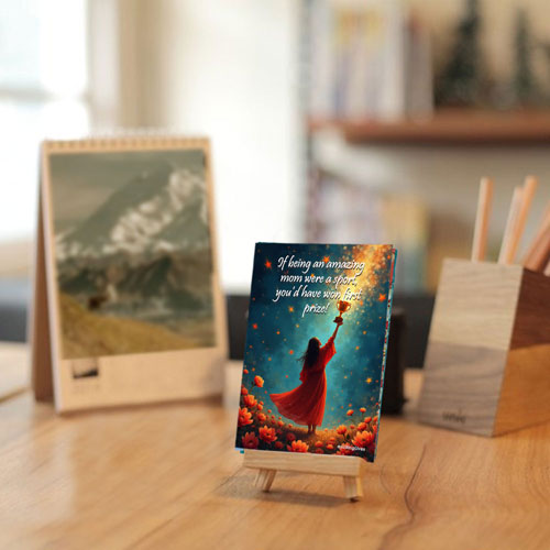 This great looking gift for mothers includes 10 postcards with inspirational messages with beautiful prints placed on a wooden easel. Change them regularly to have a different message visible every few day and make it a unique and memorable gift for her.