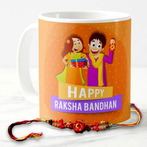 This smart mug for your brother is a wonderful gift on the special occasion of raksha bandhan! With it's wonderful permanent print and a simple and elegant rakhi it's the perfect little gift this season.