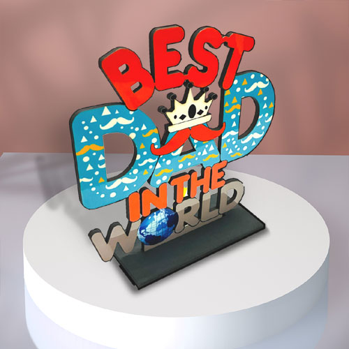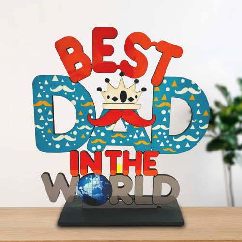 ● Includes: One wooden trophy memento with the words Best Dad In The World carved out on it in colorful lettering