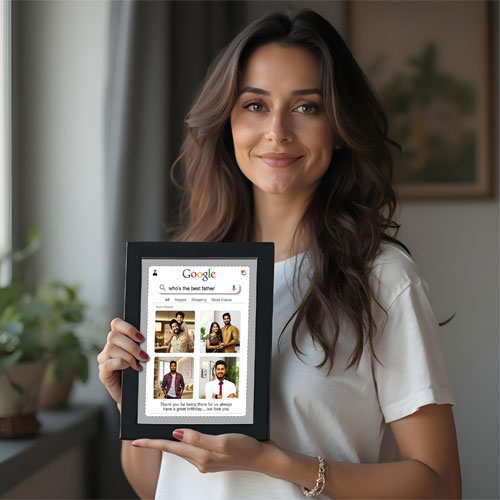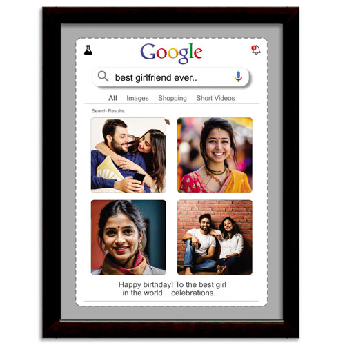 This cute personalized framed print displays a search term that you provide along with pictures of the resulting person. A caption at the bottom completes the fun Google styled gift.
