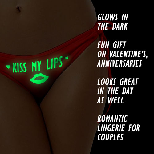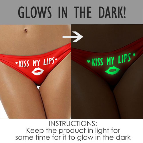This hot, naughty and playful underwear with the 'Kiss My Lips' print is a glow-in-the-dark accessory. Designed to add a touch of mischief to romantic evenings for couples or as an intimate gift on anniversaries, Valentine's Day or just for fun this one-size-fits-all underwear is a bold and unique addition to any lingerie collection.