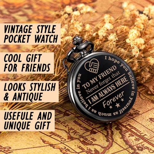 With a bronze and stylish finish this smart looking compact pocket watch is a wonderful memento and gift for friends to cherish forever your friendship.